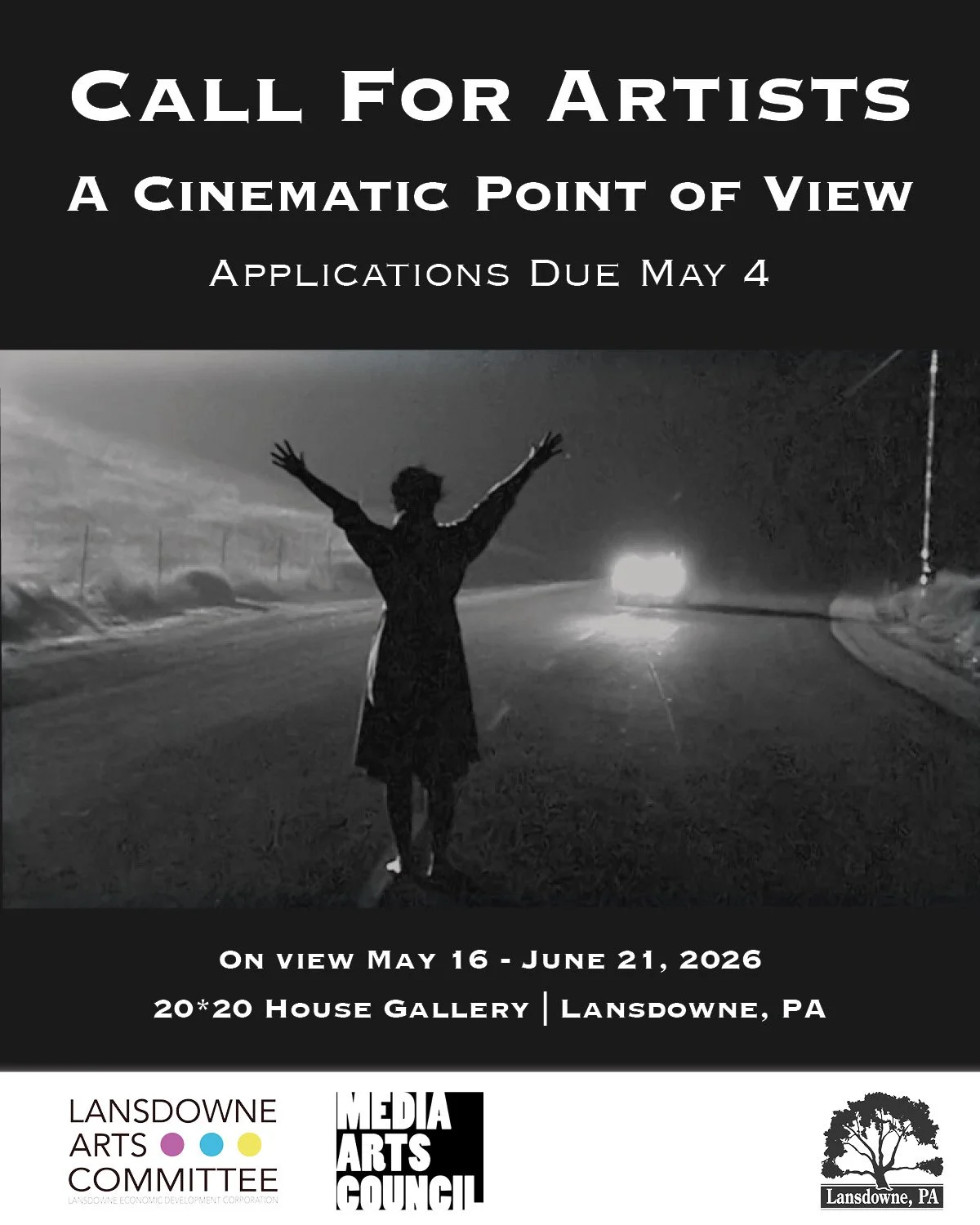In collaboration with the Media Arts Council, the Lansdowne Arts Committee invites regional artists to submit work for consideration for A Cinematic Point of View, a visual arts exhibition that explores how the language of cinematography is translated and adapted beyond the realm of filmmaking. Included artworks will showcase how visual artists, particularly photographers, reference, adapt, and reject this vocabulary in their own storytelling. Artists working in mediums beyond photography are welcome to apply. Artists of all ages are encouraged to apply.