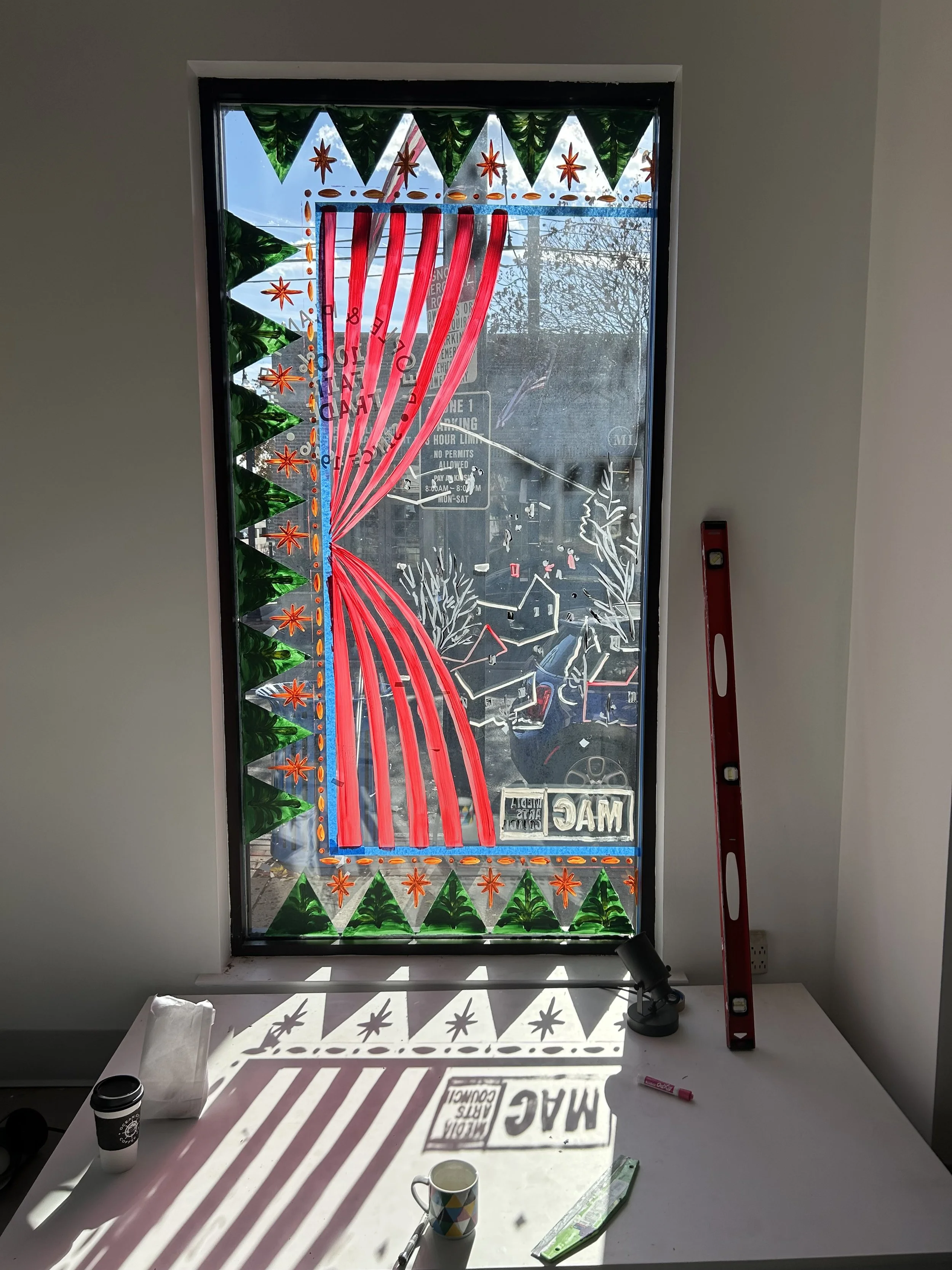 MAC was asked by Media Real Estate to brighten up a recently vacated storefront on state street. We brought in muralist Steph Untz, who painted a beautiful winter scene!